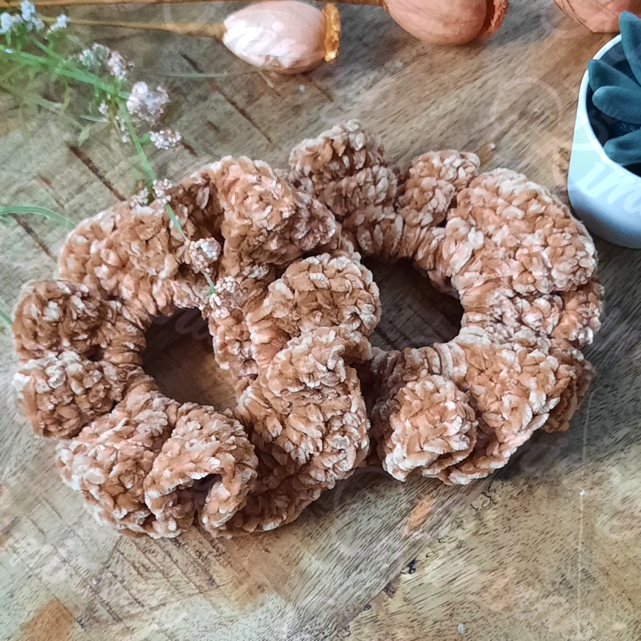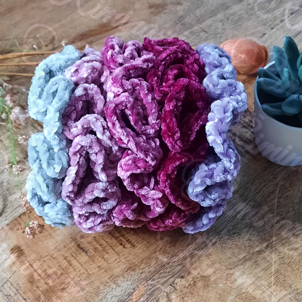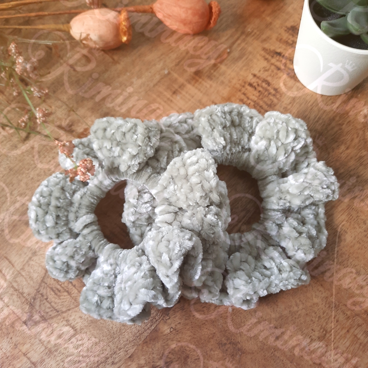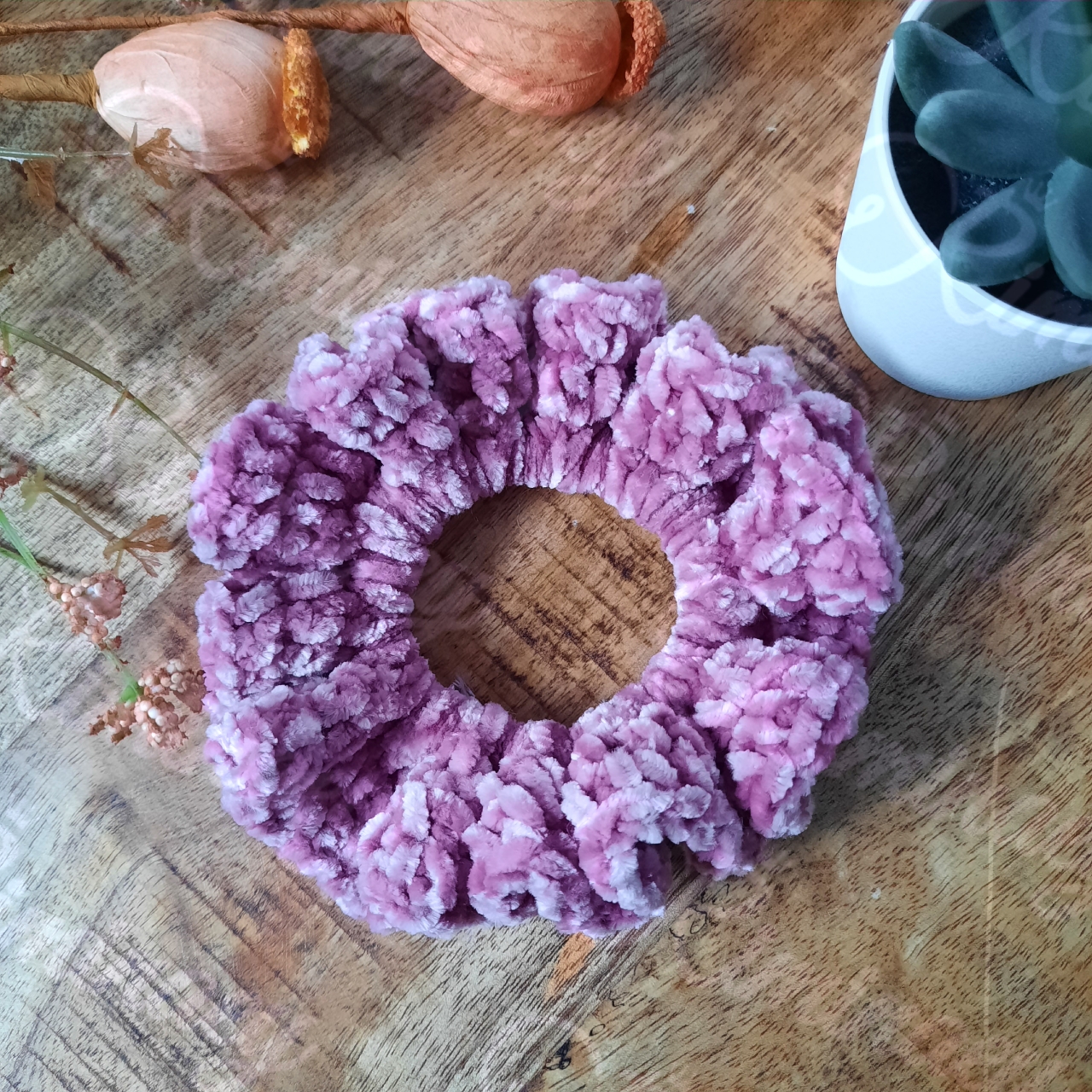 Handmade crocheted velvet scrunchies available in various vibrant colors. Comfortable to wear in your hair or on your wrist. The scrunchie is made of plush velvet yarn and a strong elastic core, both soft and stretchy.